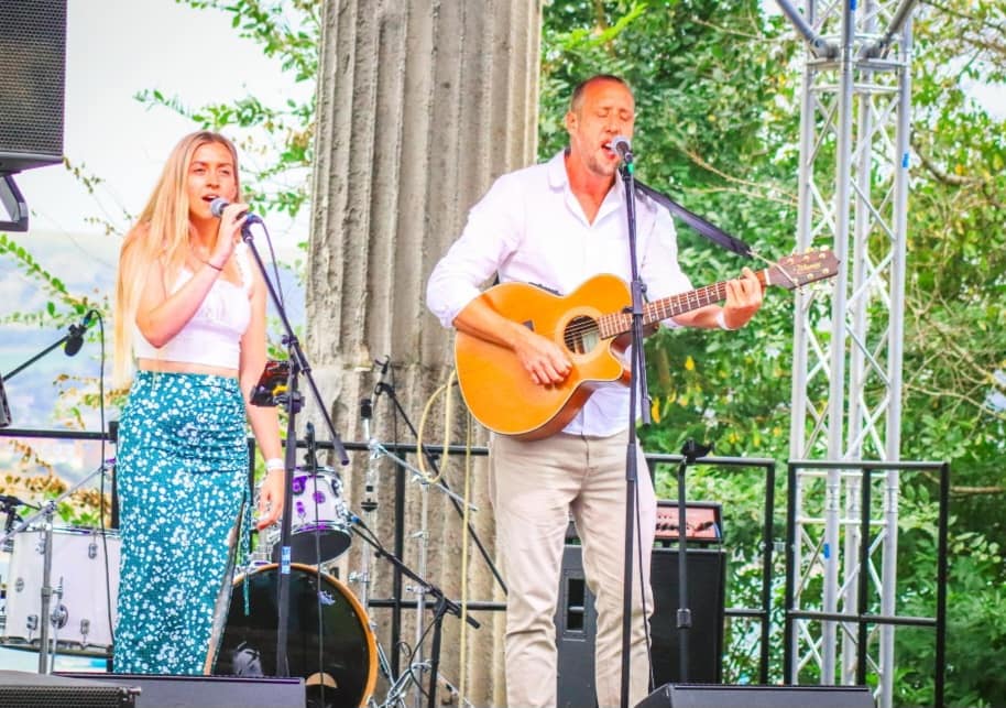 Music by the Sea took place in the natural grassed amphitheatre of the Prince Albert Gardens with an impressive lit stage built between the stone pillars – overlooking the town of Swanage, its beach and the bay – on August 31.